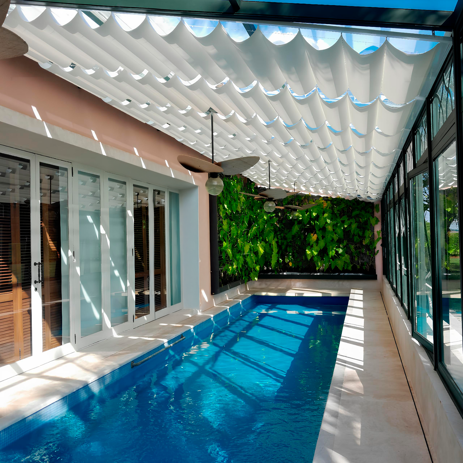 As cortinas romanas de teto com ondas trazem um toque sofisticado e moderno para qualquer ambiente. Fixadas no teto, criam a ilusão de pé-direito mais alto, e suas ondas suaves proporcionam um caimento elegante e uniforme. São ideais para quem busca funcionalidade com design contemporâneo.
